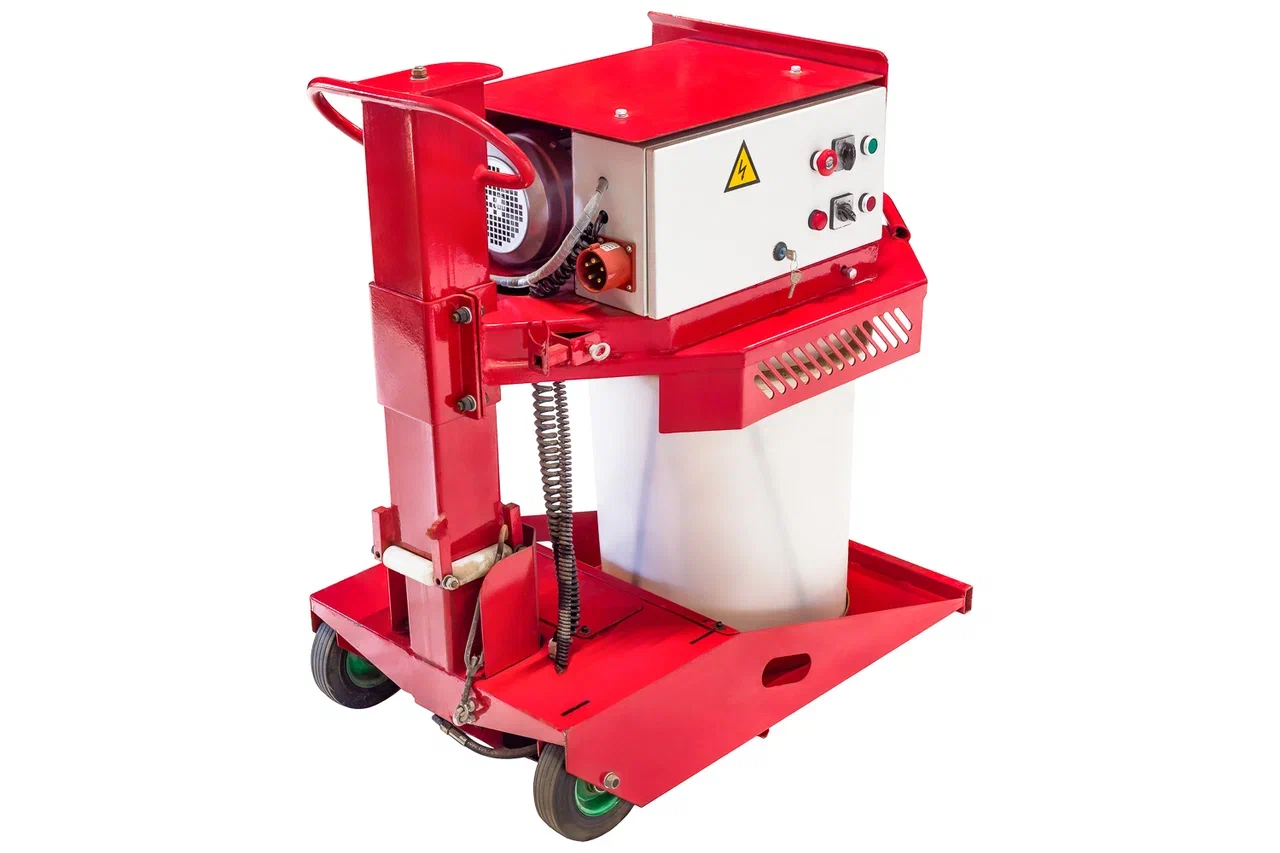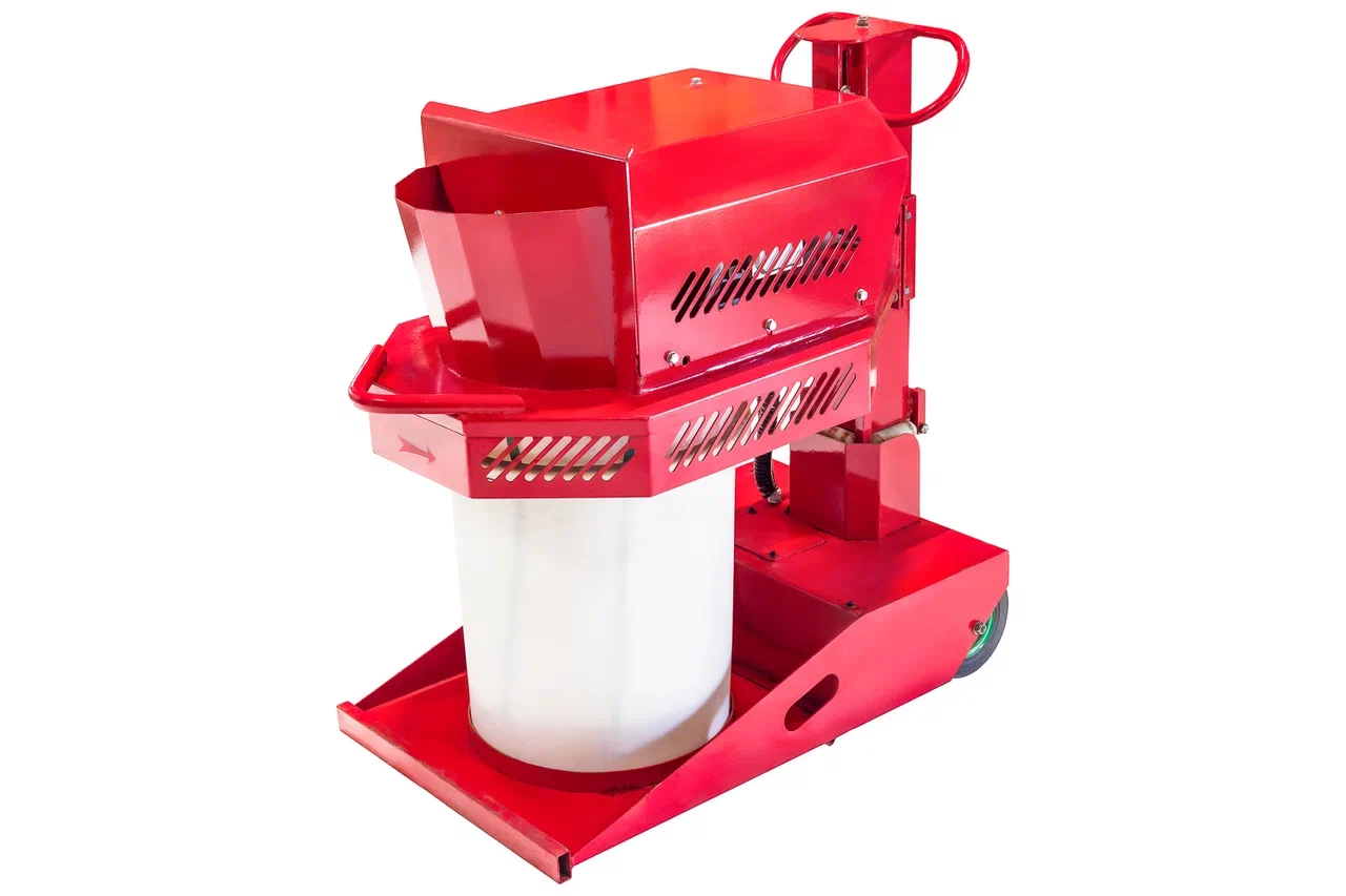 Миксер с электроприводом для производства резиновых покрытий. Перемешивает резиновую крошку, полиуретановое связующее и пигменты в однородную массу за 5 минут. Максимально допустимая разовая загрузка — 90 кг.
